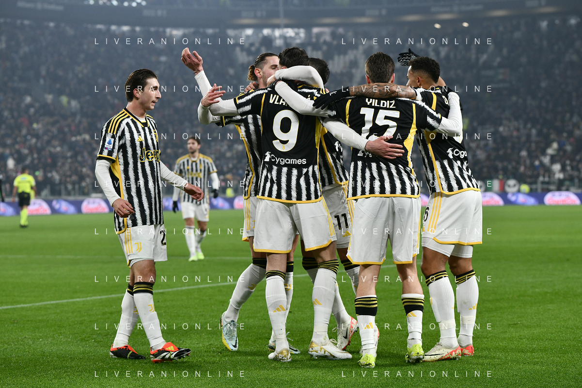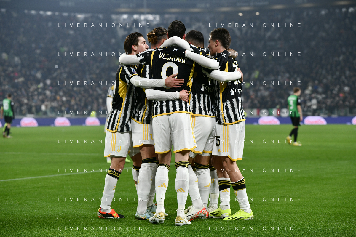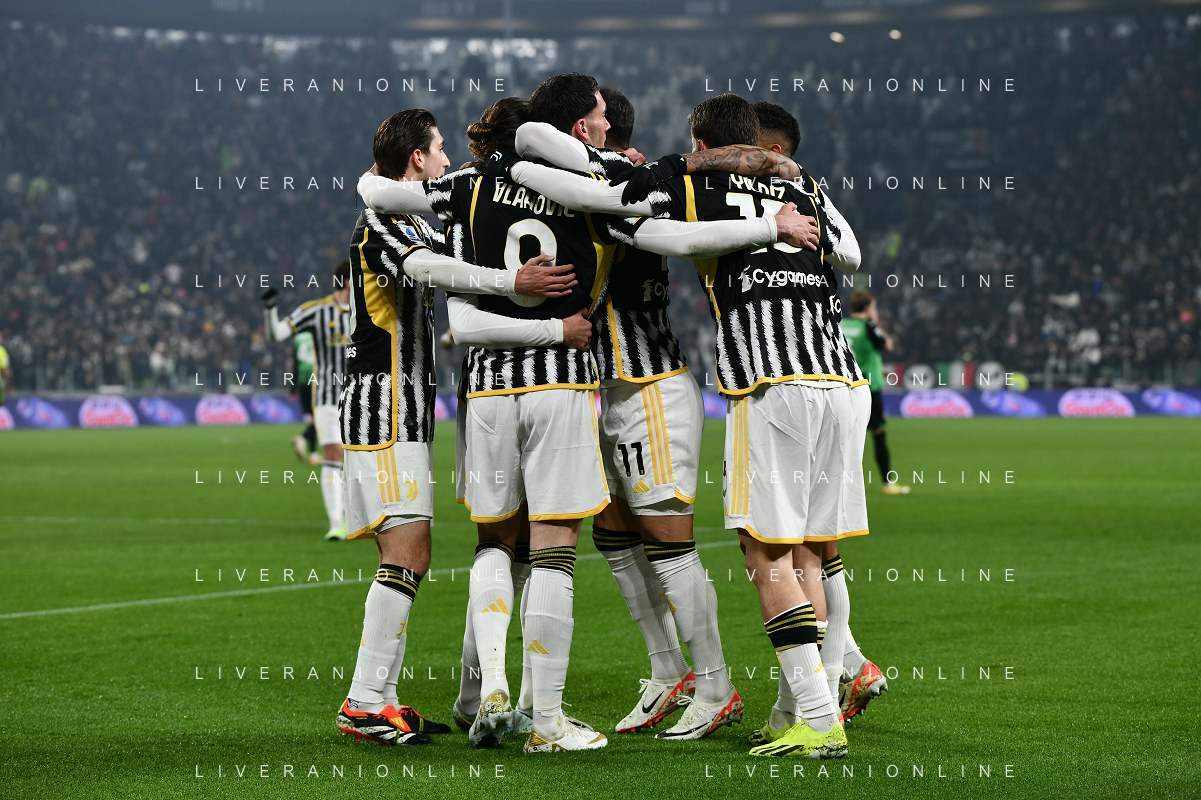 Torino 16.01.2024 Allianz Stadium @Manuela Viganti/Ag. Aldo Liverani sas Juventus vs Sassuolo Campionato Calcio Serie A TIM 2023/2024 20a giornata Nella foto: esultanza juventus dopo il gol di dusan vlahovic