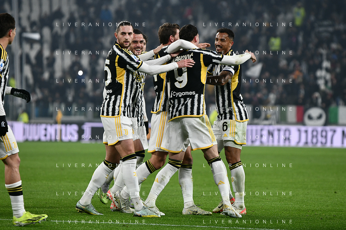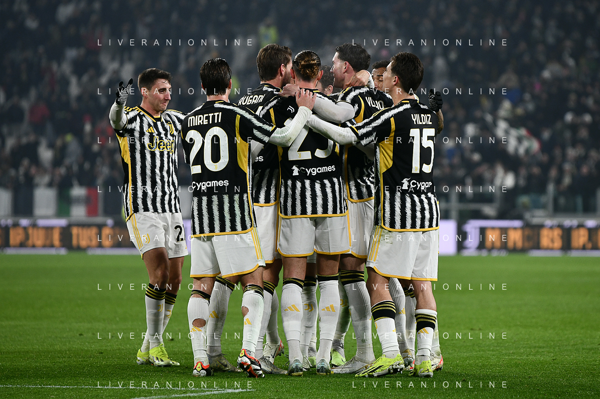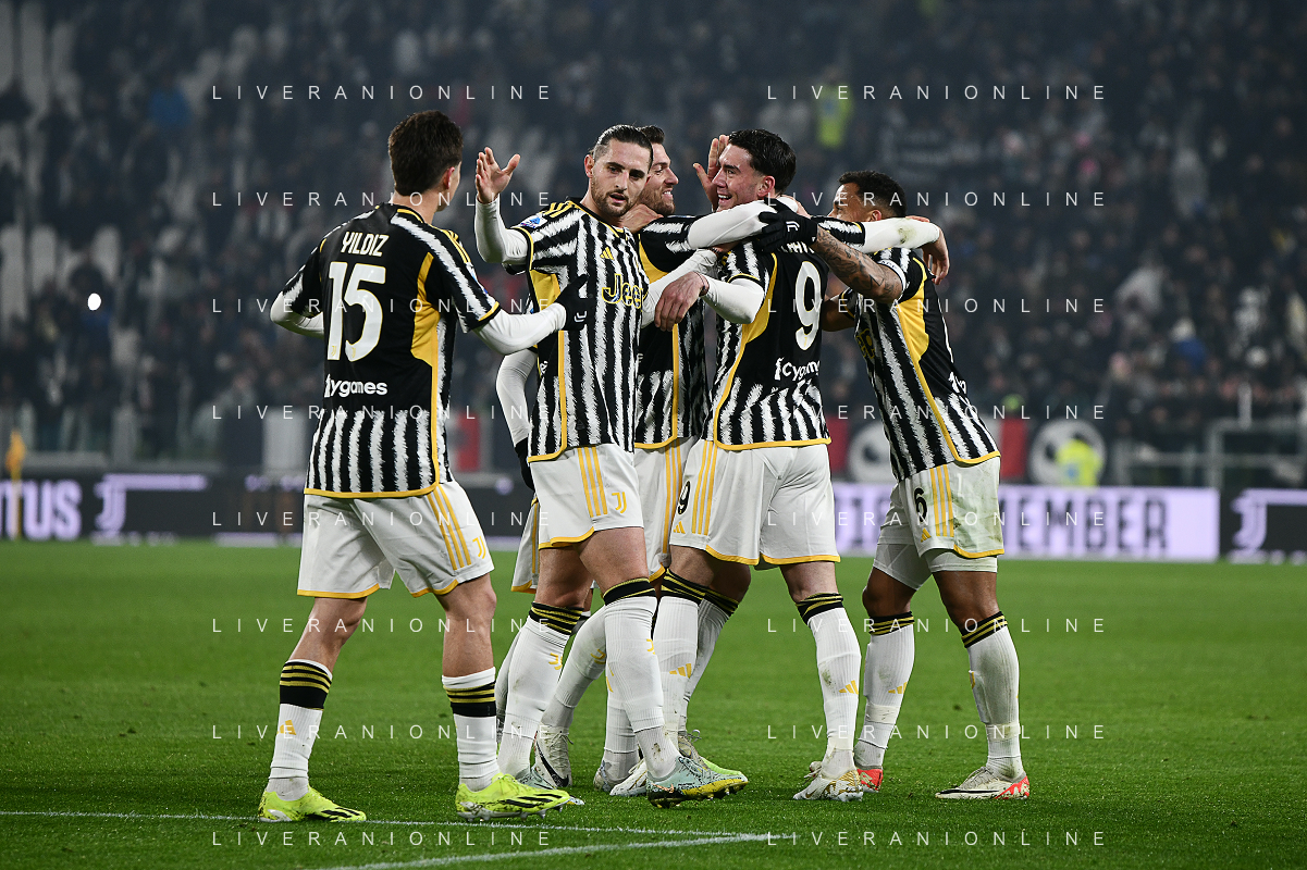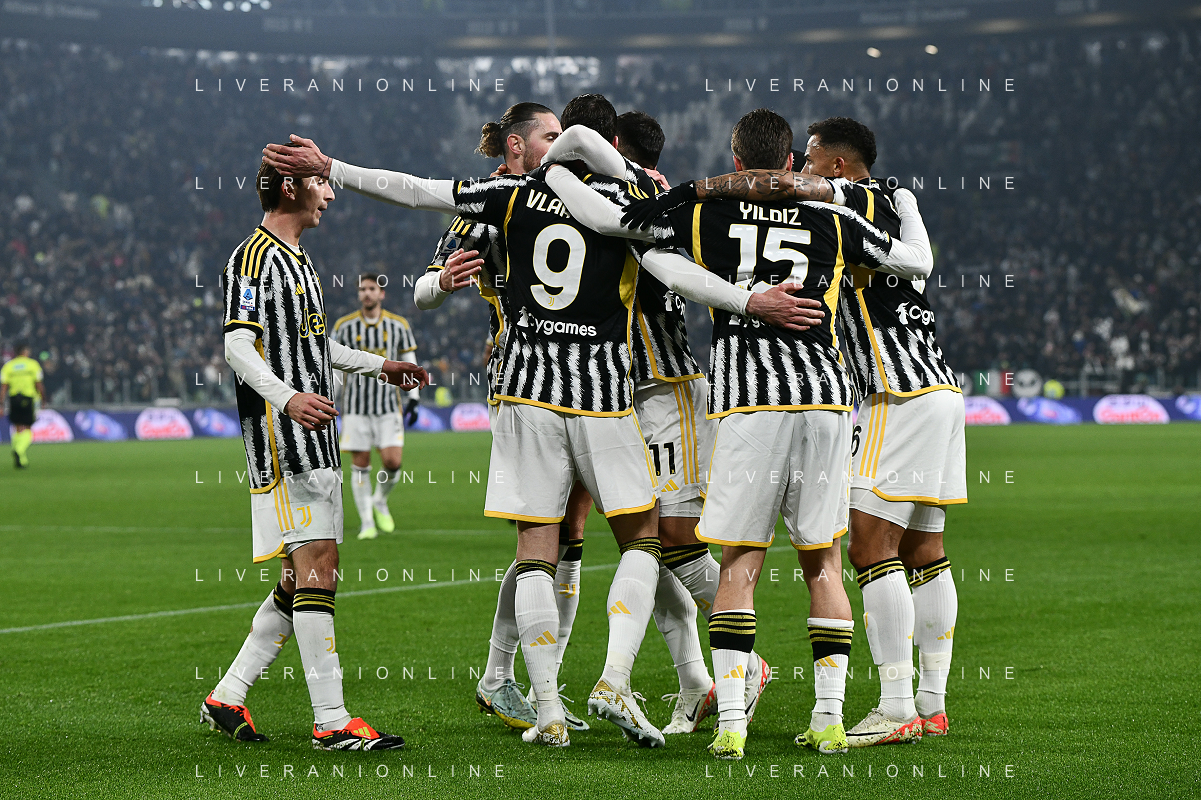 Torino 16.01.2024 Allianz Stadium @Manuela Viganti/Ag. Aldo Liverani sas Juventus vs Sassuolo Campionato Calcio Serie A TIM 2023/2024 20a giornata Nella foto: esultanza juventus dopo il gol di dusan vlahovic