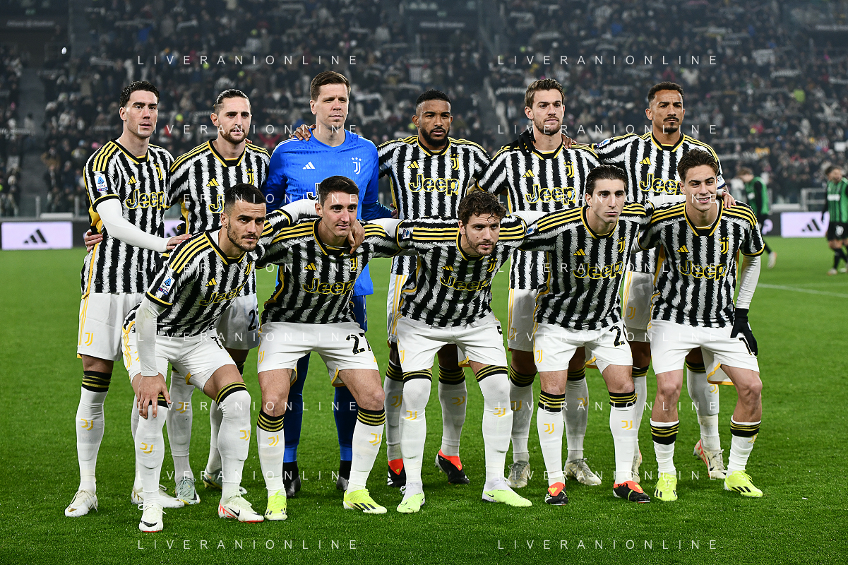 Torino 16.01.2024 Allianz Stadium @Manuela Viganti/Ag. Aldo Liverani sas Juventus vs Sassuolo Campionato Calcio Serie A TIM 2023/2024 20a giornata Nella foto: la formazione della juventus da sx verso dx: dusan vlahovic, adrien rabiot, wojciech szczesny, gleison bremer, daniele rugani, danilo, filip kostic, andrea cambiaso, manuel locatelli, fabio miretti, kenan yildiz