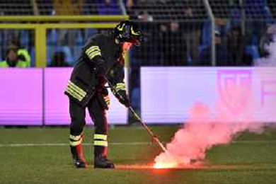 TVRG Lecco vs Pisa nella foto fumogeno lanciato in campo dai tifosi Lecco Lecco 20-01-2024 Stadio Rigamonti Ceppi Campionato Serie BKT - 21a giornata foto Roberto Garavaglia/Agenzia Aldo Liverani sas