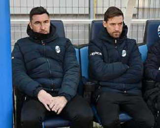 TVRG Lecco vs Pisa nella foto Andrea Malgrati vice allenatore Lecco e dietro sulla DX Emiliano Bonazzoli allenatore Lecco Lecco 20-01-2024 Stadio Rigamonti Ceppi Campionato Serie BKT - 21a giornata foto Roberto Garavaglia/Agenzia Aldo Liverani sas/AGENZIA ALDO LIVERANI SAS