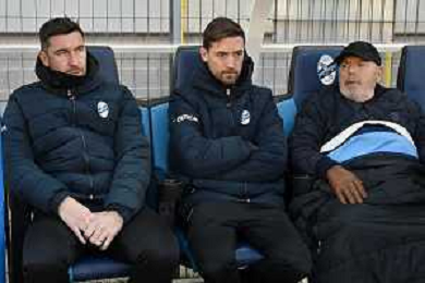 TVRG Lecco vs Pisa nella foto da SX Emiliano Bonazzoli allenatore Lecco, Andrea Malgrati vice allenatore Lecco e Paolo Di Nunno presidente Lecco Lecco 20-01-2024 Stadio Rigamonti Ceppi Campionato Serie BKT - 21a giornata foto Roberto Garavaglia/Agenzia Aldo Liverani sas/AGENZIA ALDO LIVERANI SAS