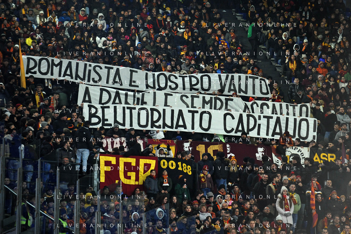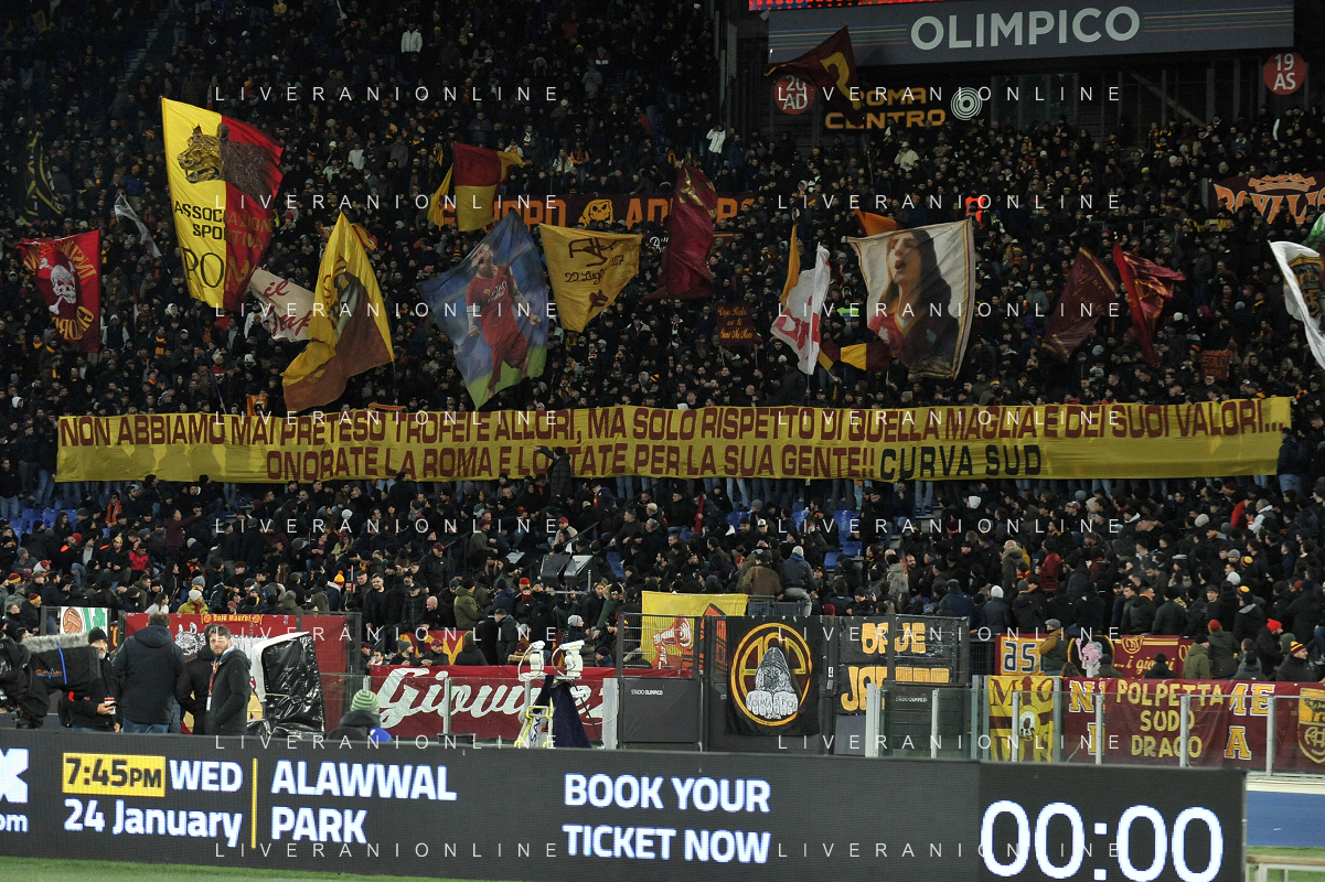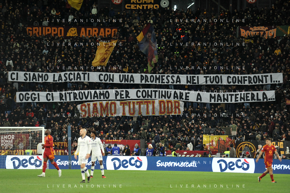 Roma vs Hellas Verona - Campionato Serie A TIM - 21 giornata - Stadio Olimpico - Roma 20-01-2024 nella foto Striscione per De Rossi FOTO FEDERICO GAETANO-AG ALDO LIVERANI SAS