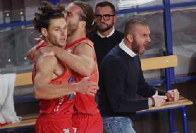 IMOLA 21 01 2024 ANDREA COSTA BASKET-TECNOSWITCH RUVO DI PUGLIA SERIE B NELLA FOTO ESULTANZA LUCA FAZZI E EMANUELE DI PAOLANTONIO IMOLA ©SANNA/AGENZIA ALDO LIVERANI SAS