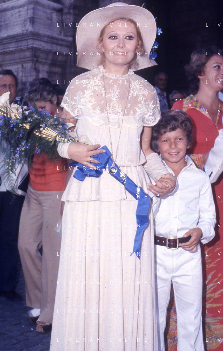 COL-RETROSPETTIVA PAOLA QUATTRINI ATTRICE NELLA FOTO PAOLA QUATTRINI MATRIMONIO CON IL MARITO LUCIANO APPIGNANI IL 10-08-1973 A ROMA IN CAMPIDOGLIO AG ALDO LIVERANI SAS