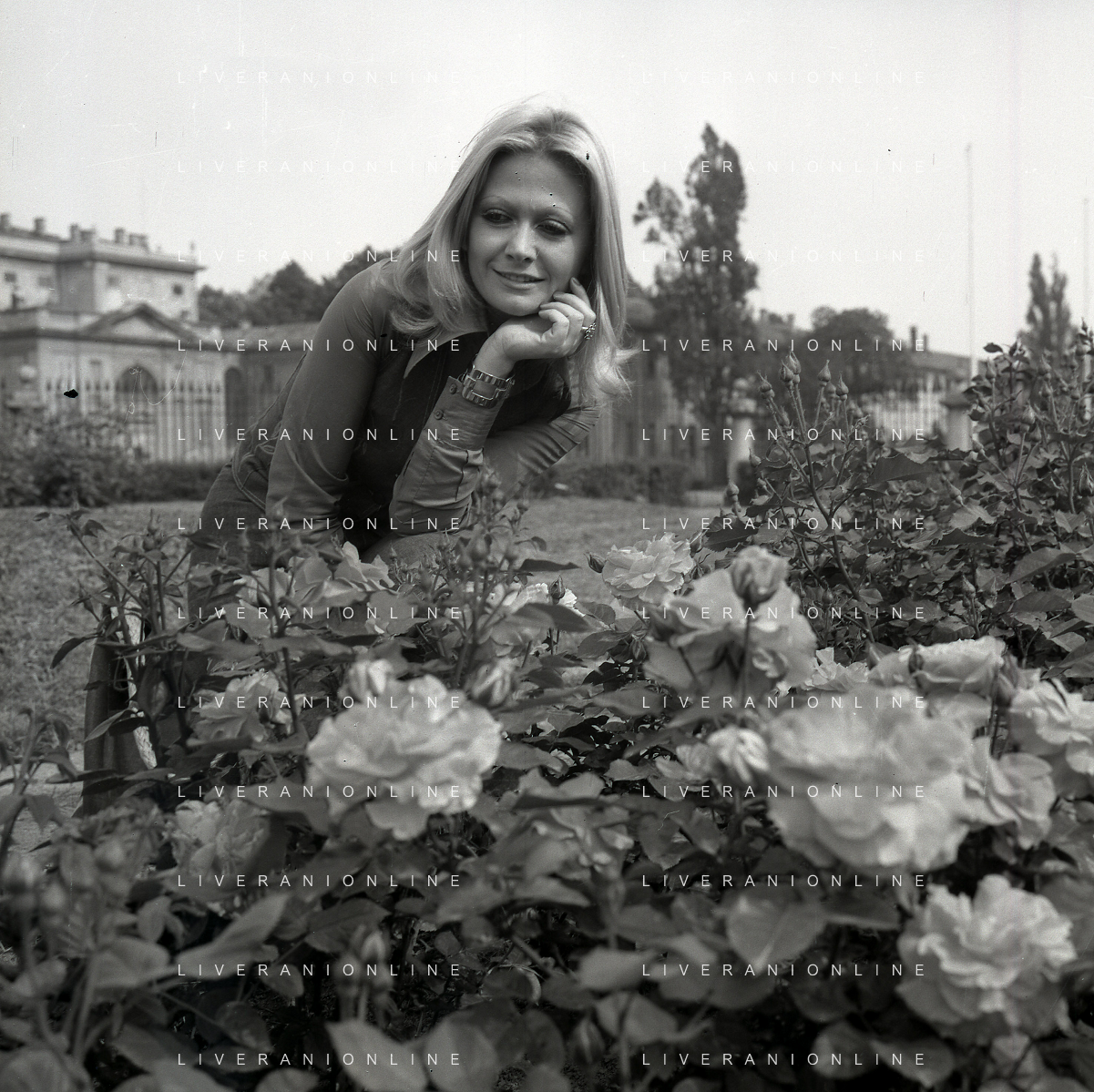 NEG--RETROSPETTIVA PAOLA QUATTRINI ATTRICE NELLA FOTO PAOLA QUATTRINI NELL'ANNO 1973 A MONZA PER LA MANIFESTAZIONE DELLA ROSA PIU' BELLA AG ALDO LIVERANI SAS