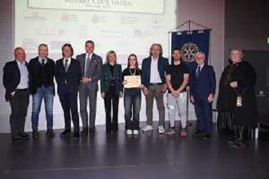IMOLA 25 01 2024 AUTODROMO ENZO E DINO FERRARI PREMIAZIONI 38 ROTARY SPORT NELLA FOTO JENNIFER GOLLINI MEDAGLIA D'ORO 2023CON PRESIDENTE ROTARY IMOLA AUGUSTO MACCHIRELLI MANUEL POGGIALI MOTOCILCISTA,SPONSOR E STAFF ROTARY FOTO GIANNI SANNA-AG ALDO LIVERANI SAS