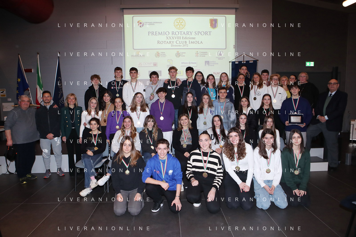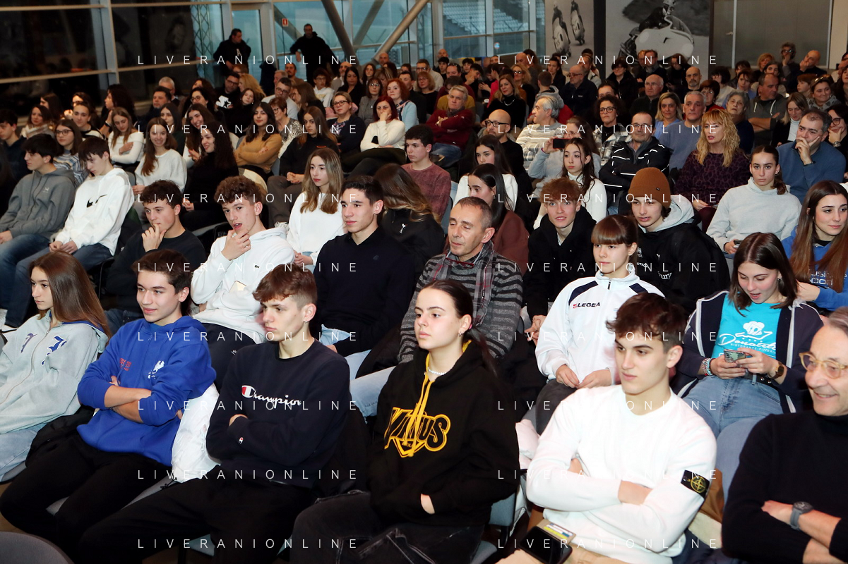 IMOLA 25 01 2024 AUTODROMO ENZO E DINO FERRARI PREMIAZIONI 38 ROTARY SPORT NELLA FOTO STUDENTI PREMIATI CON TESTIMONIAL DELLA SERATA MANUEL POGGIALI CAMPIONE DEL MOTOCILISMO FOTO GIANNI SANNA-AG ALDO LIVERANI SAS