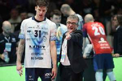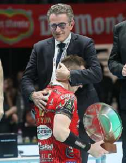 CASALECCHIO DI RENO 28 01 2024 FINALE COPPA ITALIA MASCHILE PALLAVOLO SIR SUSA VIM PERUGIA-MINT VERO VOLLEY MONZA 3-1 NELLA FOTO ALLENATORE PERUGIA PALLAVOLO ANGELO LORENZETTI CON MIGLIOR GIOCATORE DELLA FINALE OLEH PLOTNYTSKYI PERUGIA FOTO GIANNI SANNA-AG ALDO LIVERANI SAS