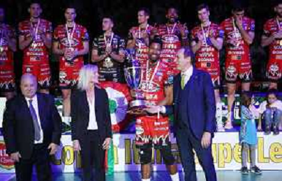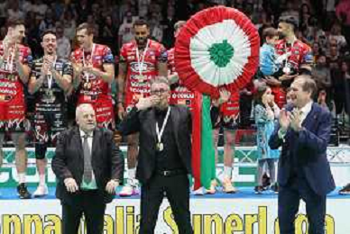 CASALECCHIO DI RENO 28 01 2024 FINALE COPPA ITALIA SIR SUSA VIM PERUGIA-MINT VERO VOLLEY MONZA 3-1 NELLA FOTO PRESIDENTE SIRCI GINO RICEVE IL TRICOLORE DA PRESIDENTE LEGA VOLLEY MASSIMO RIGHI FOTO GIANNI SANNA-AG ALDO LIVERANI SAS