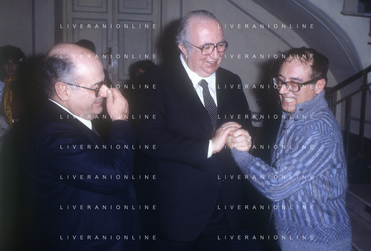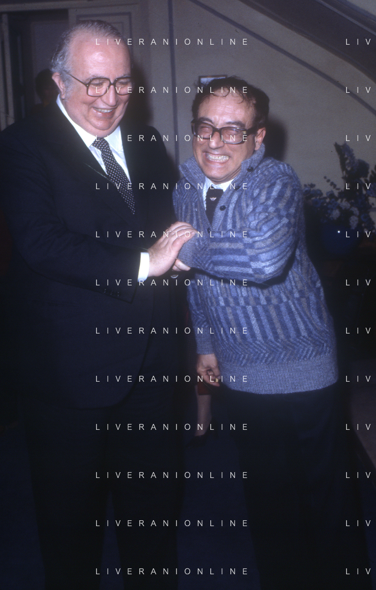 DIAP-RETROSPETTIVA ORESTE LIONELLO ATTORE NELLA FOTO ORESTE LIONELLO CON GIOVANNI SPADOLINI NELL'ANNO 1982 A ROMA FOTO EDGARDO DELLA SCORCIOSA-AG ALDO LIVERANI SAS