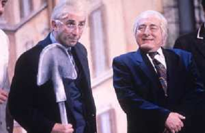 DIAP-RETROSPETTIVA ORESTE LIONELLO ATTORE NELLA FOTO ORESTE LIONELLO TRASMISSIONE TELEVISIVA BAGAGLINO PUNTATA CHAMPAGNE ANNO 1995-1998 CON MANILO DOVI' IMTAZIONE FRANCESCO COSSIGA E OSCAR SCALFARO AG ALDO LIVERANI SAS