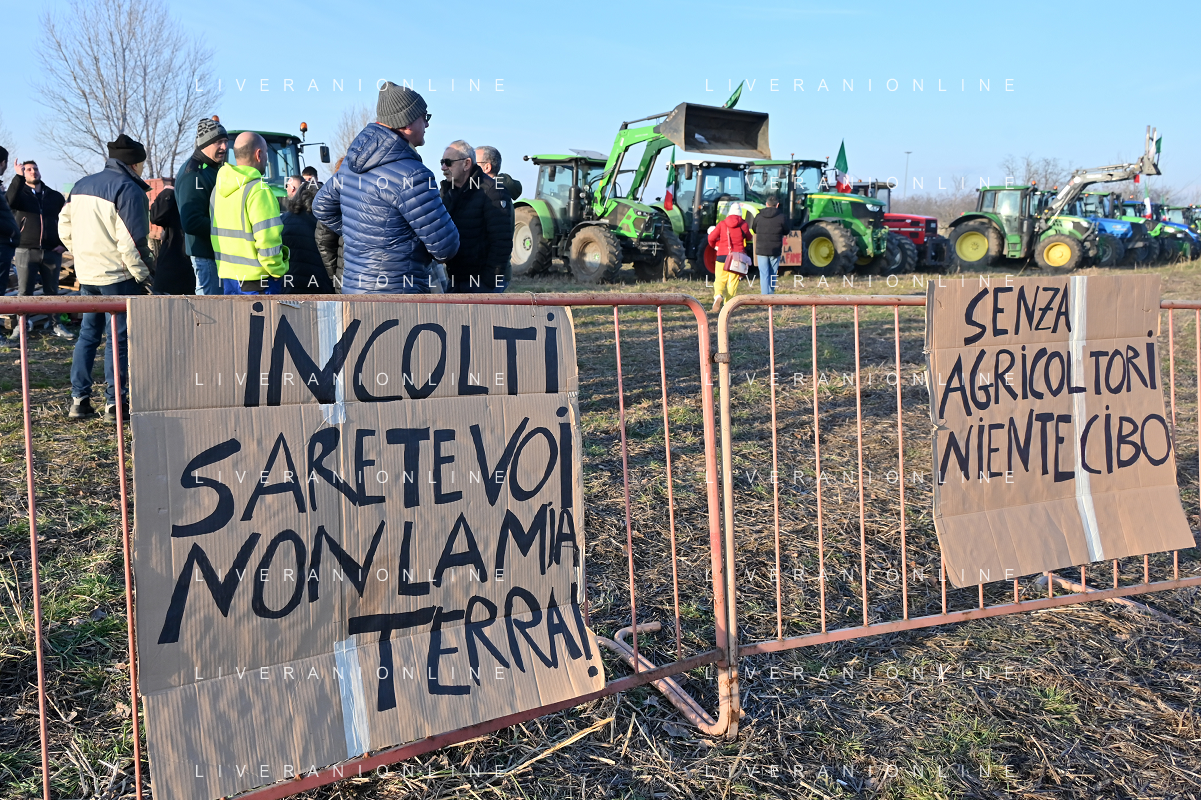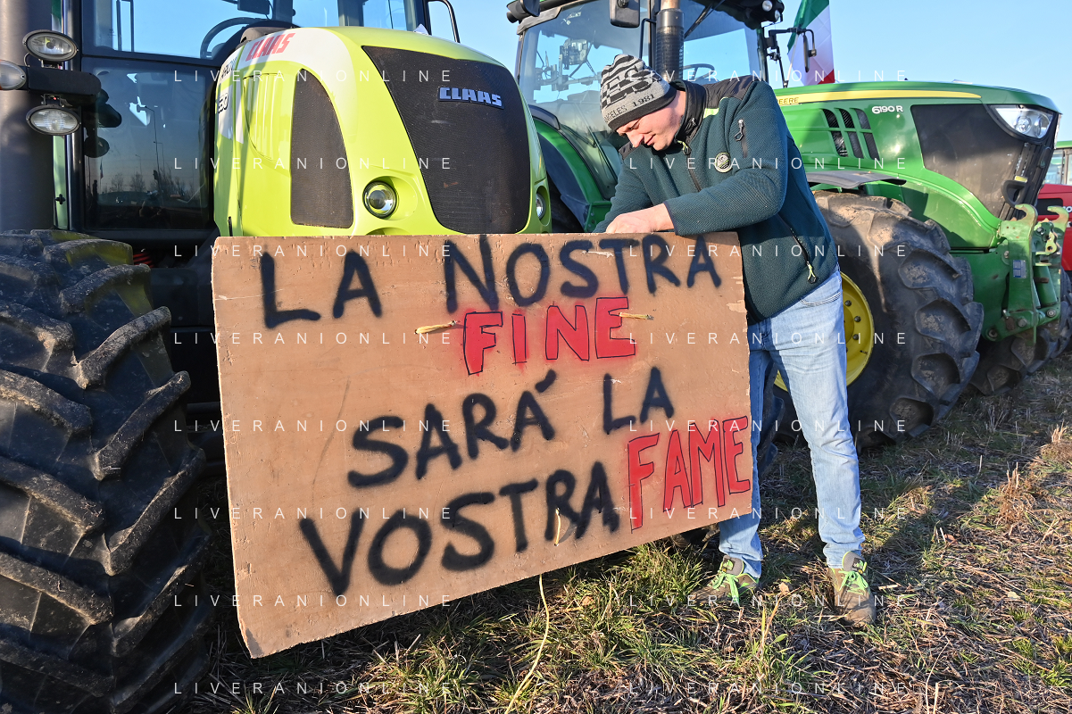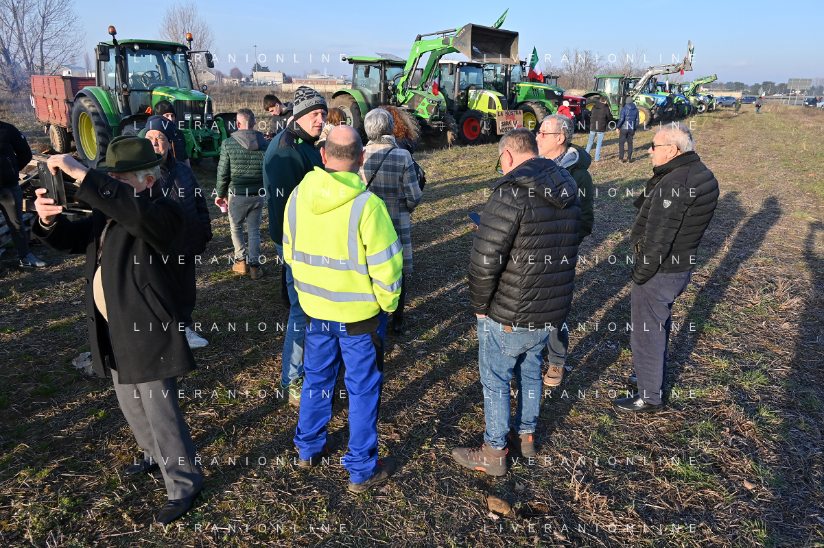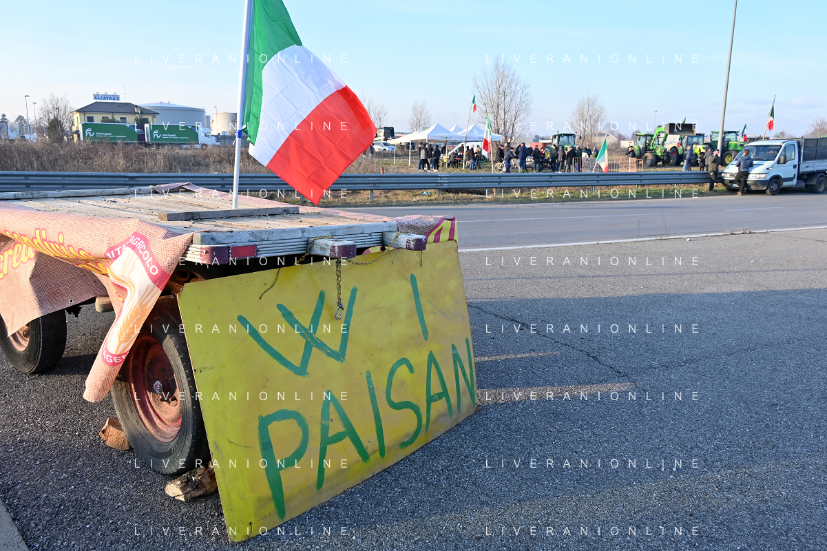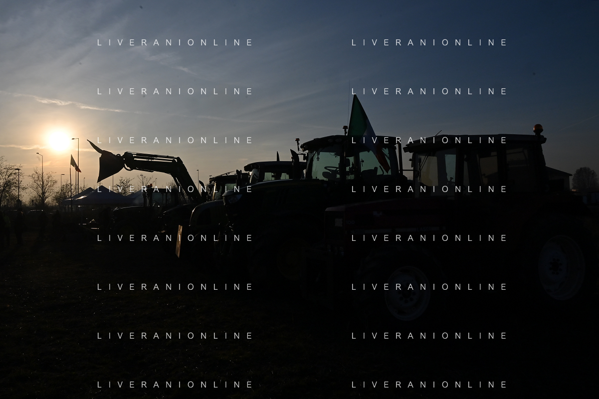 Il presidio degli agricoltori, nei pressi del casello dell'autostrada A4, in segno di protesta contro le politiche adottate dall'Unione Europea sul tema dell'agricoltura Arluno 01.02.2024 - 37 file