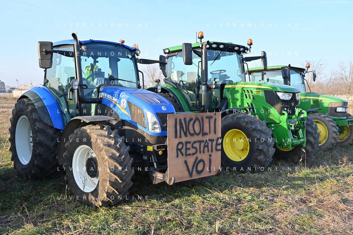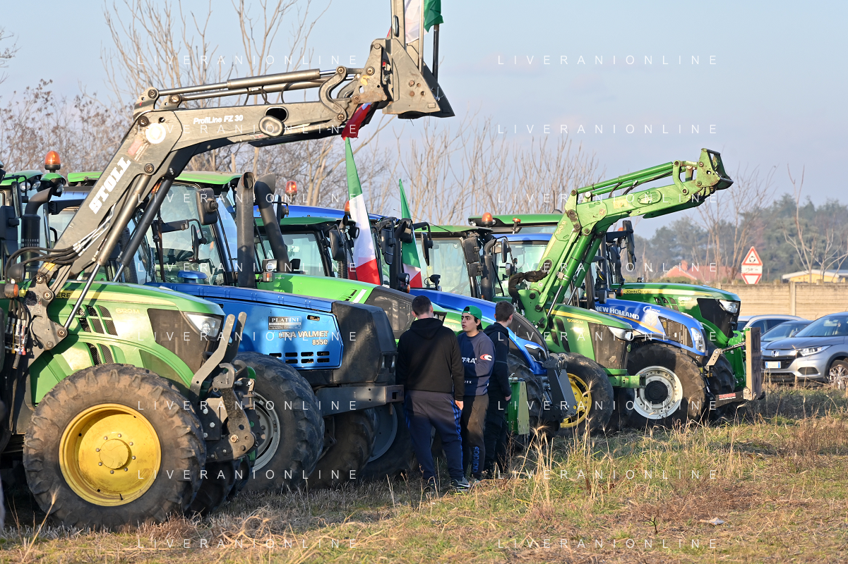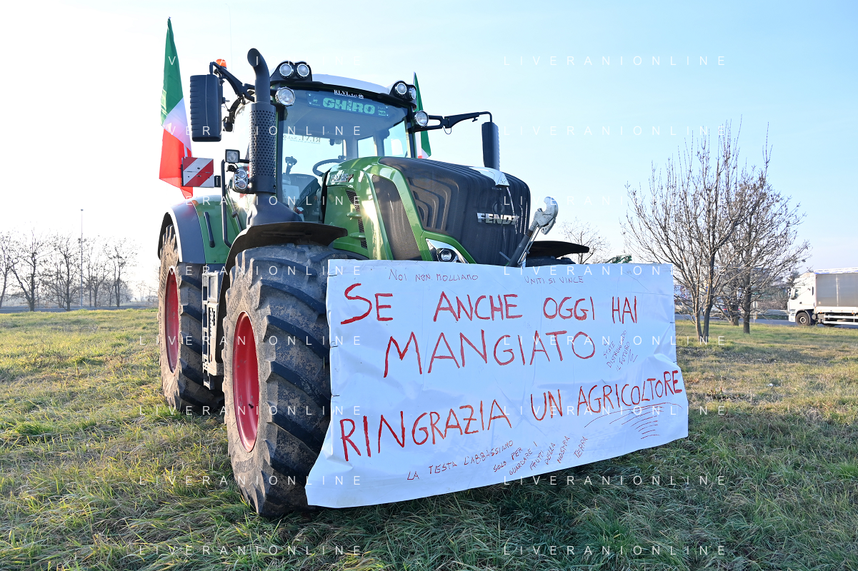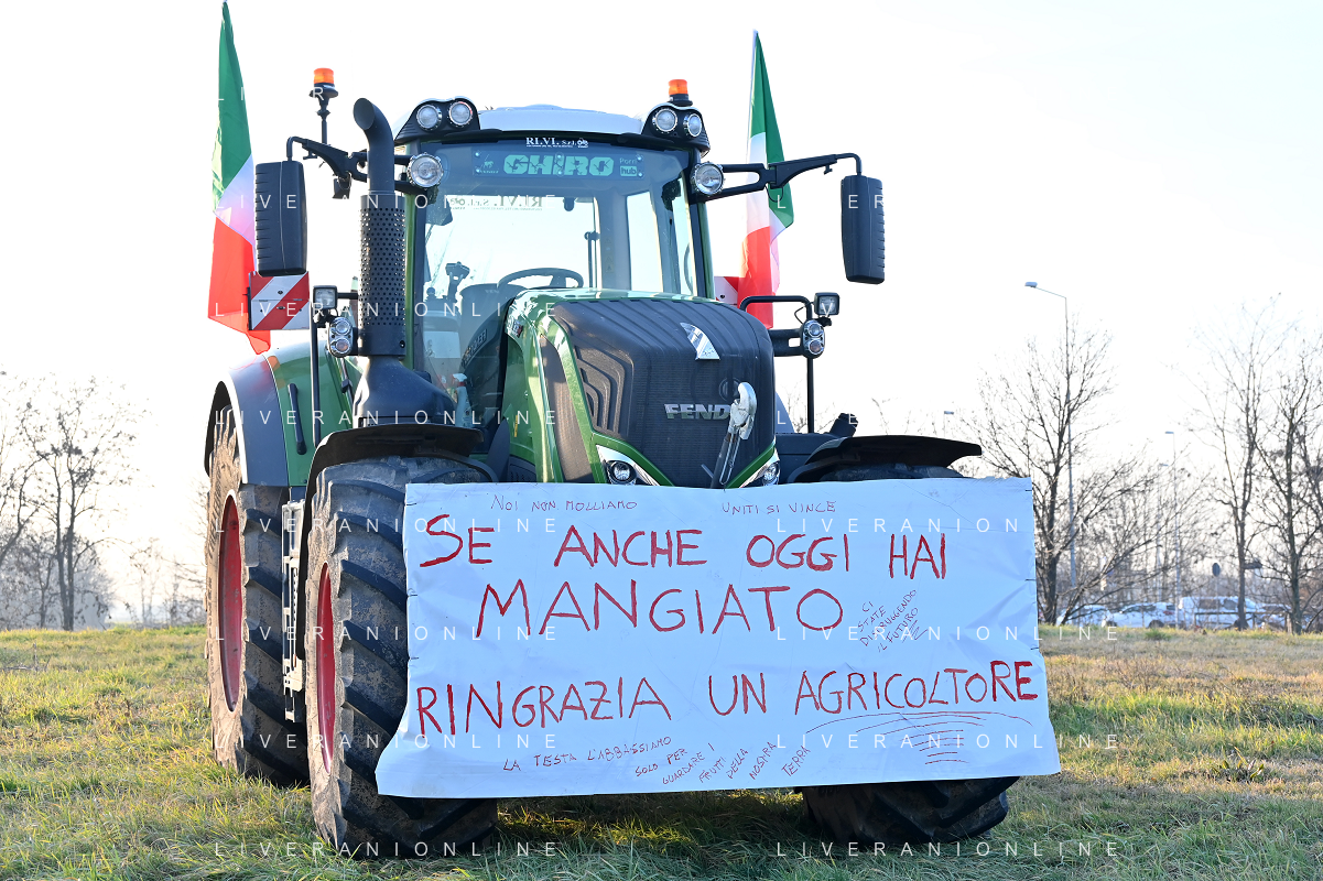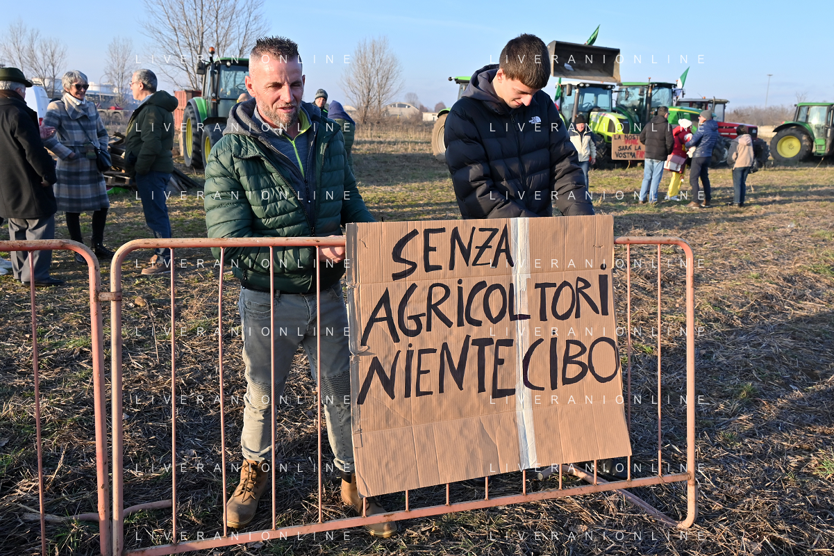Il presidio degli agricoltori, nei pressi del casello dell'autostrada A4, in segno di protesta contro le politiche adottate dall'Unione Europea sul tema dell'agricoltura Arluno 01.02.2024 - 37 file