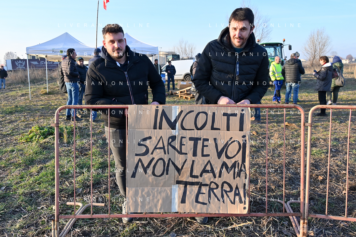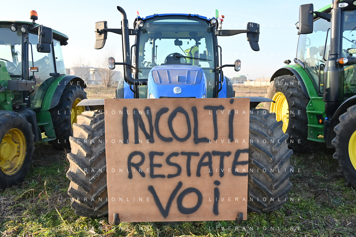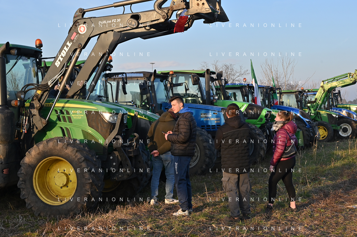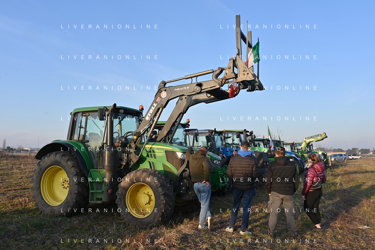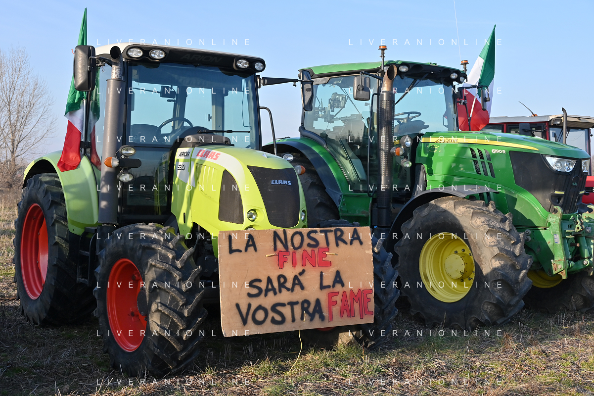Il presidio degli agricoltori, nei pressi del casello dell'autostrada A4, in segno di protesta contro le politiche adottate dall'Unione Europea sul tema dell'agricoltura Arluno 01.02.2024 - 37 file