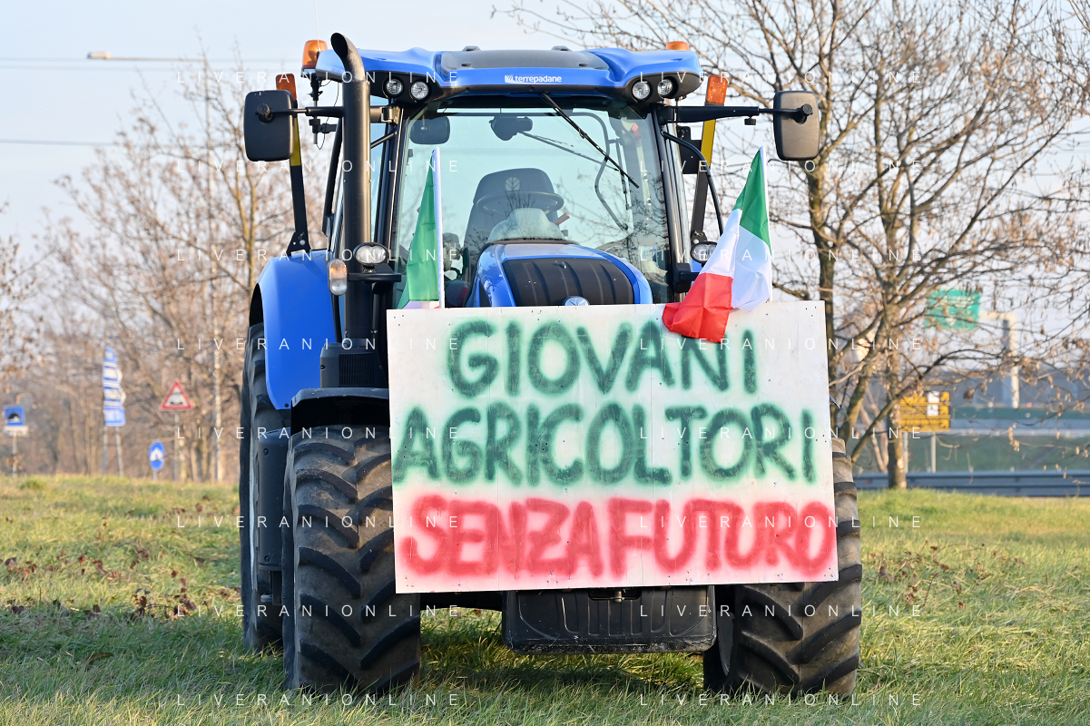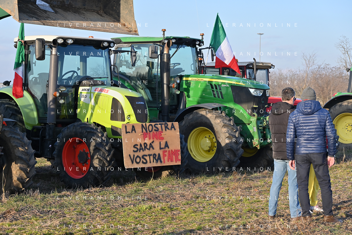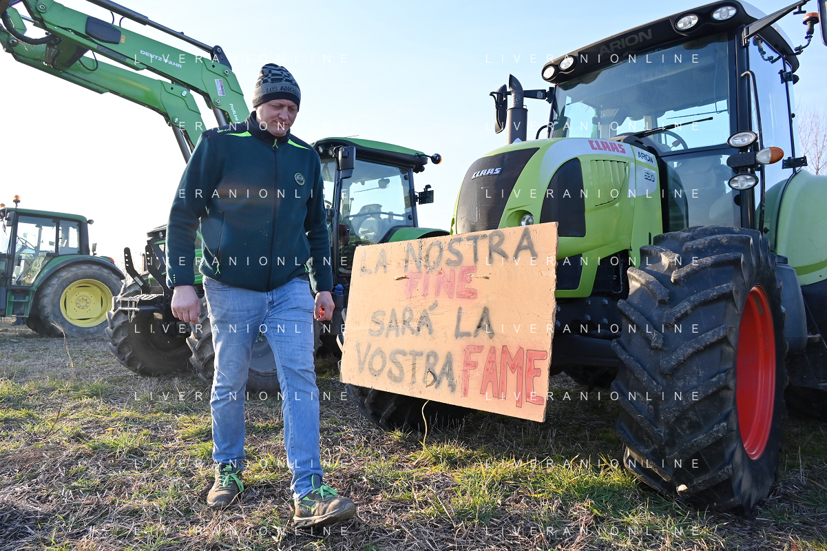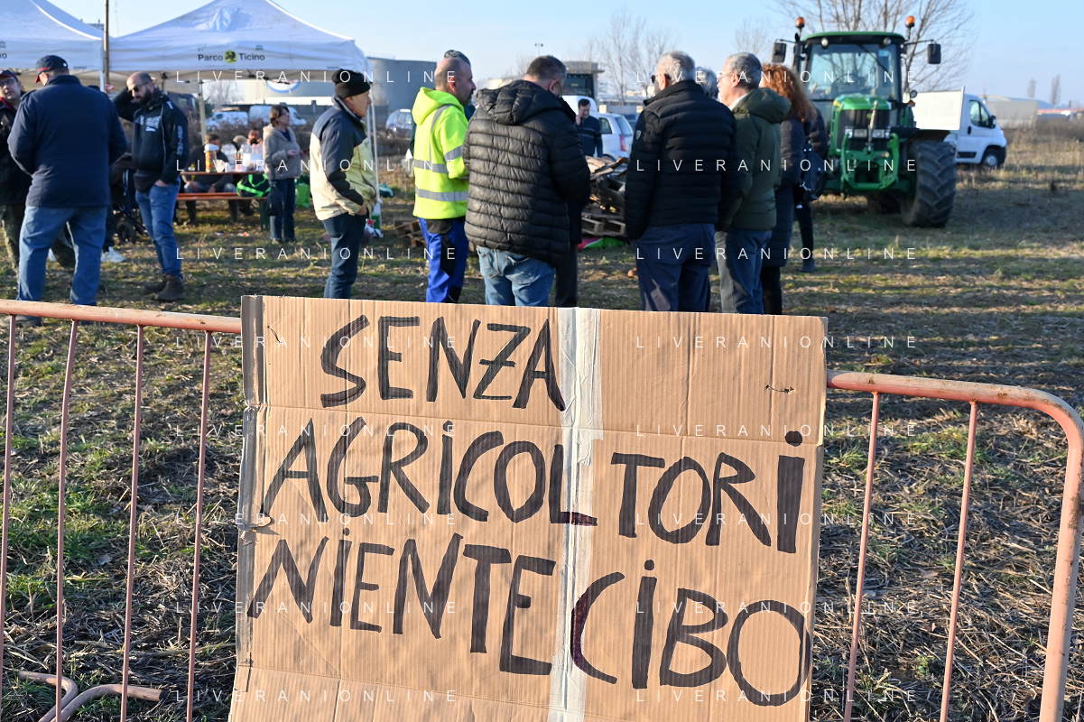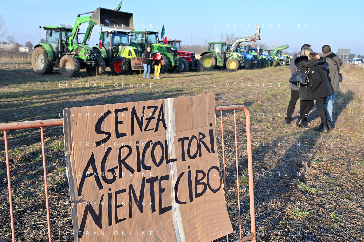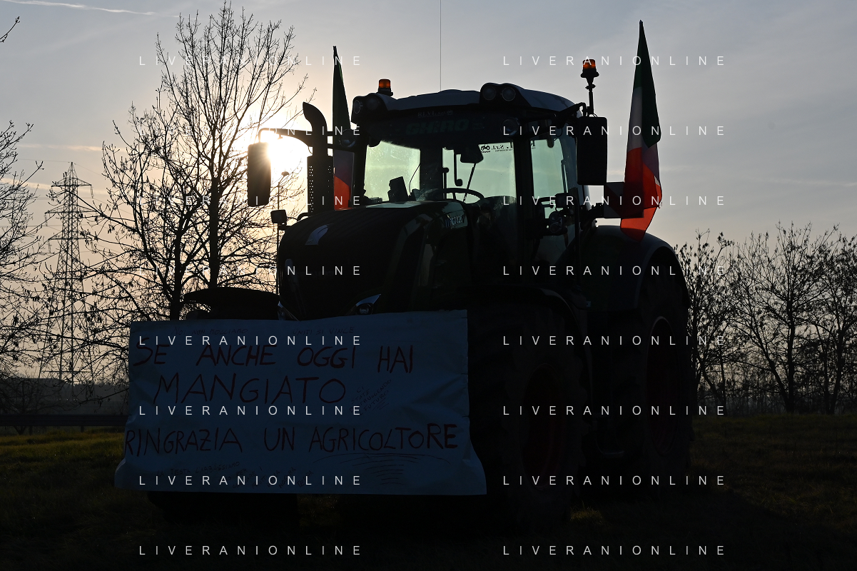 TVRG Presidio agricoltori Arluno (MI) 01-02-2024 Il presidio degli agricoltori, nei pressi del casello dell'autostrada A4, in segno di protesta contro le politiche adottate dall'Unione Europea sul tema dell'agricoltura foto Roberto Garavaglia/Agenzia Aldo Liverani sas
