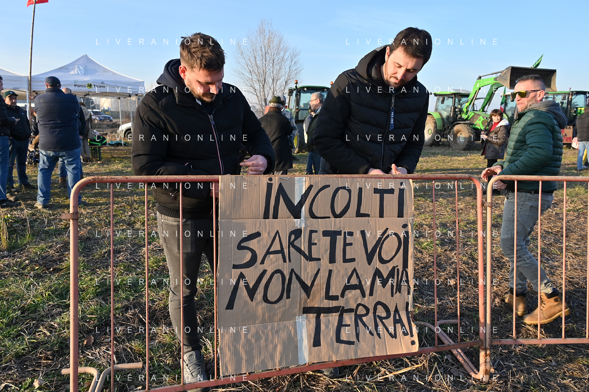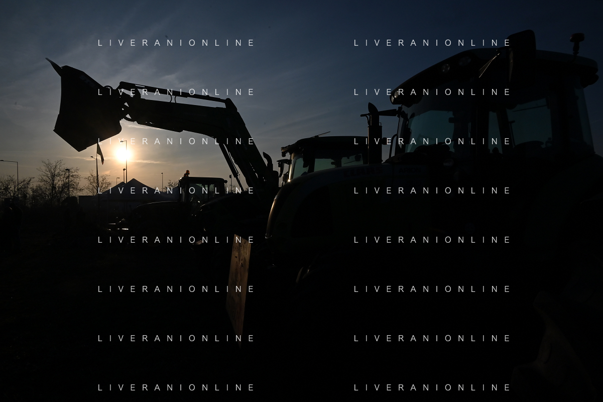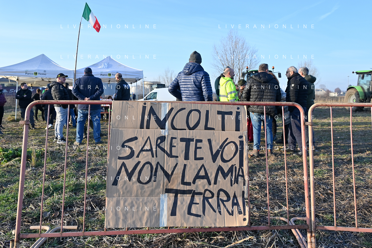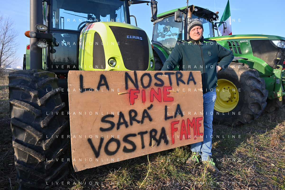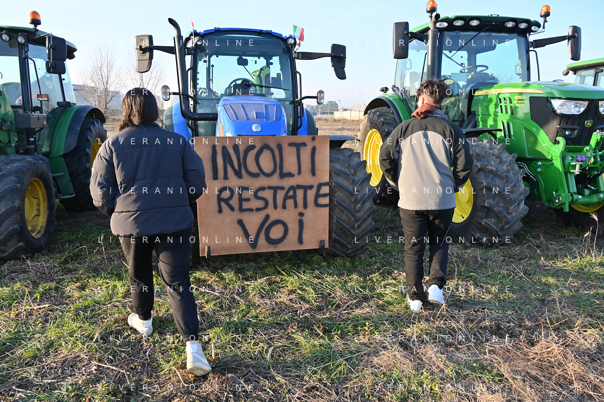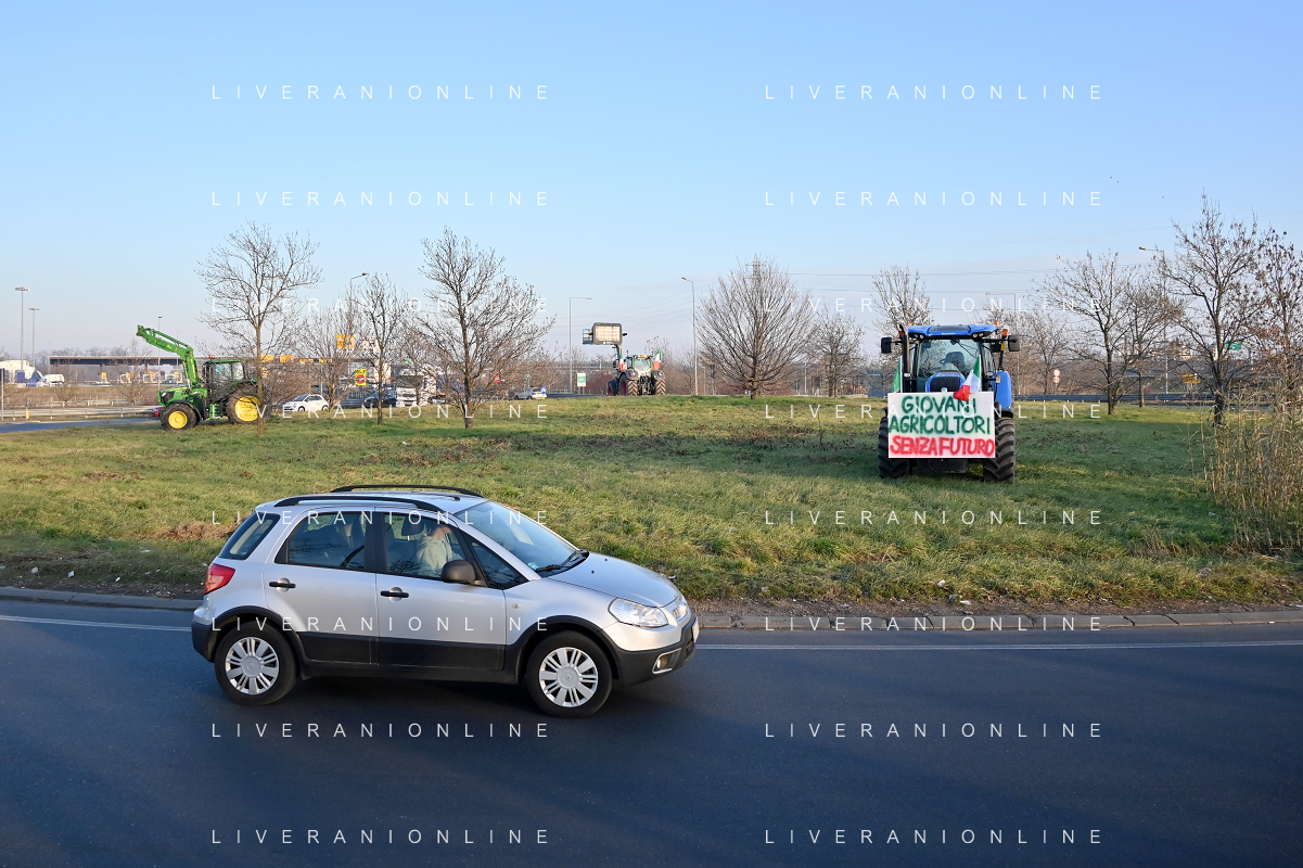 TVRG Presidio agricoltori Arluno (MI) 01-02-2024 Il presidio degli agricoltori, nei pressi del casello dell'autostrada A4, in segno di protesta contro le politiche adottate dall'Unione Europea sul tema dell'agricoltura foto Roberto Garavaglia/Agenzia Aldo Liverani sas