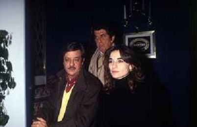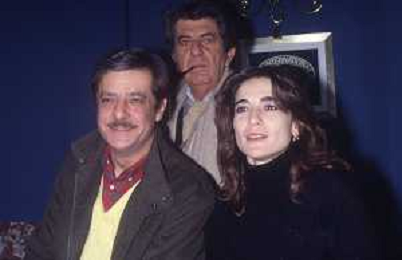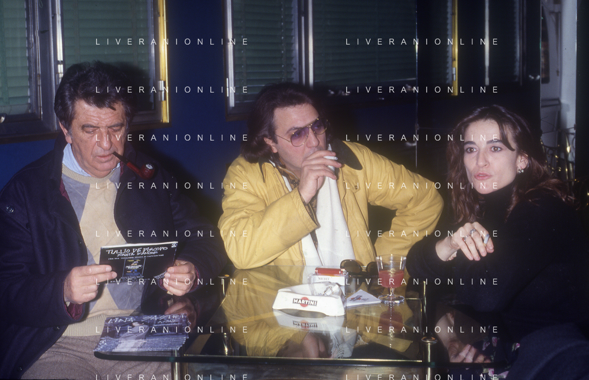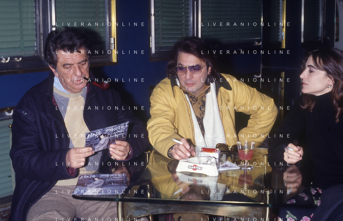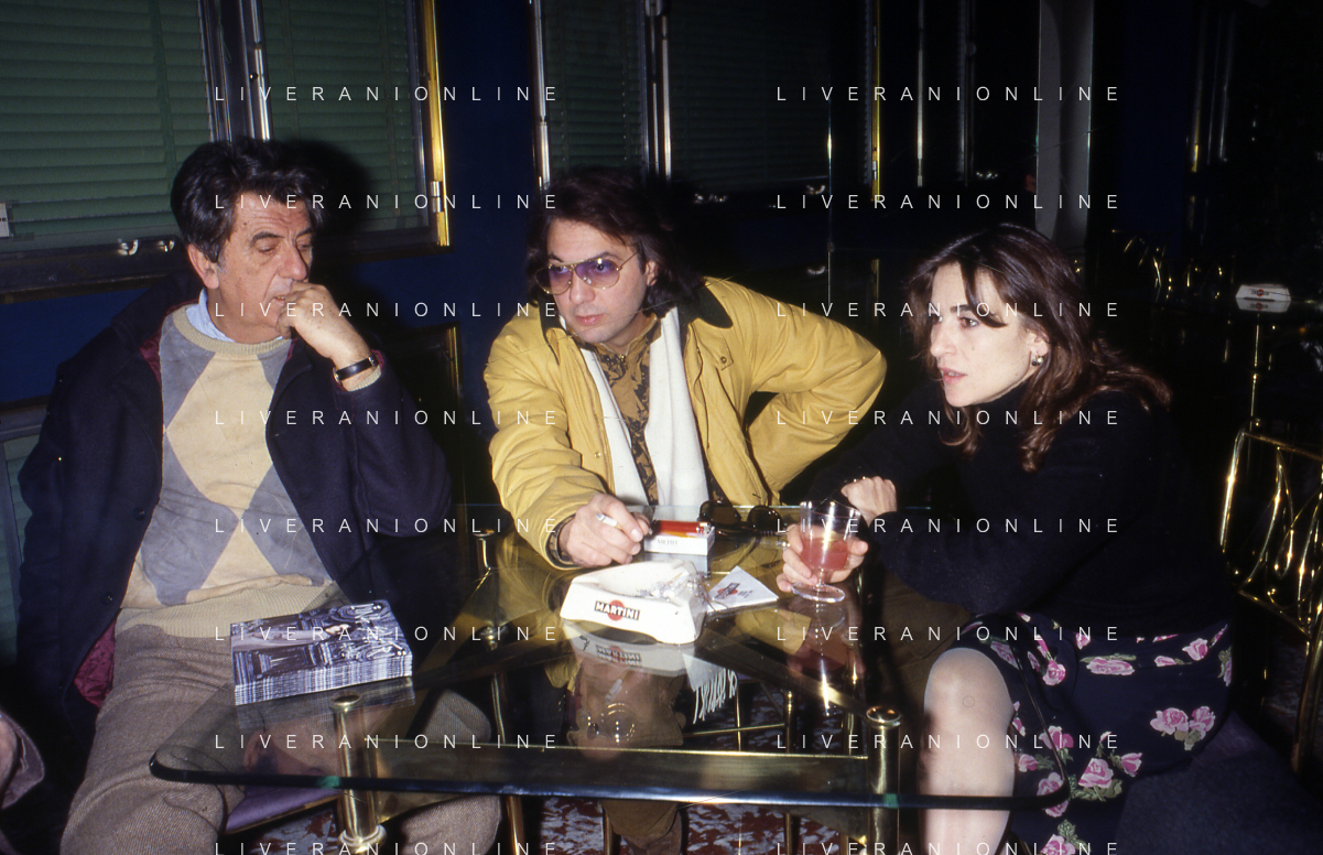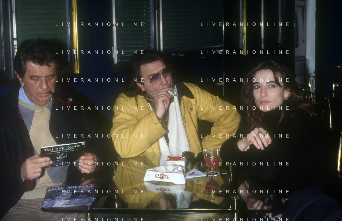 DIAP-RETROSPETTIVA LINA SASTRI ATTRICE E CANTANTE NELLA FOTO LINA SASTRI A MILANO IN TERRAZZA MARTINI CON NANNI LOY GIANCARLO GIANNINI E TULLIO DE PISCOPO NELL'ANNO 1984 AG ALDO LIVERANI SAS