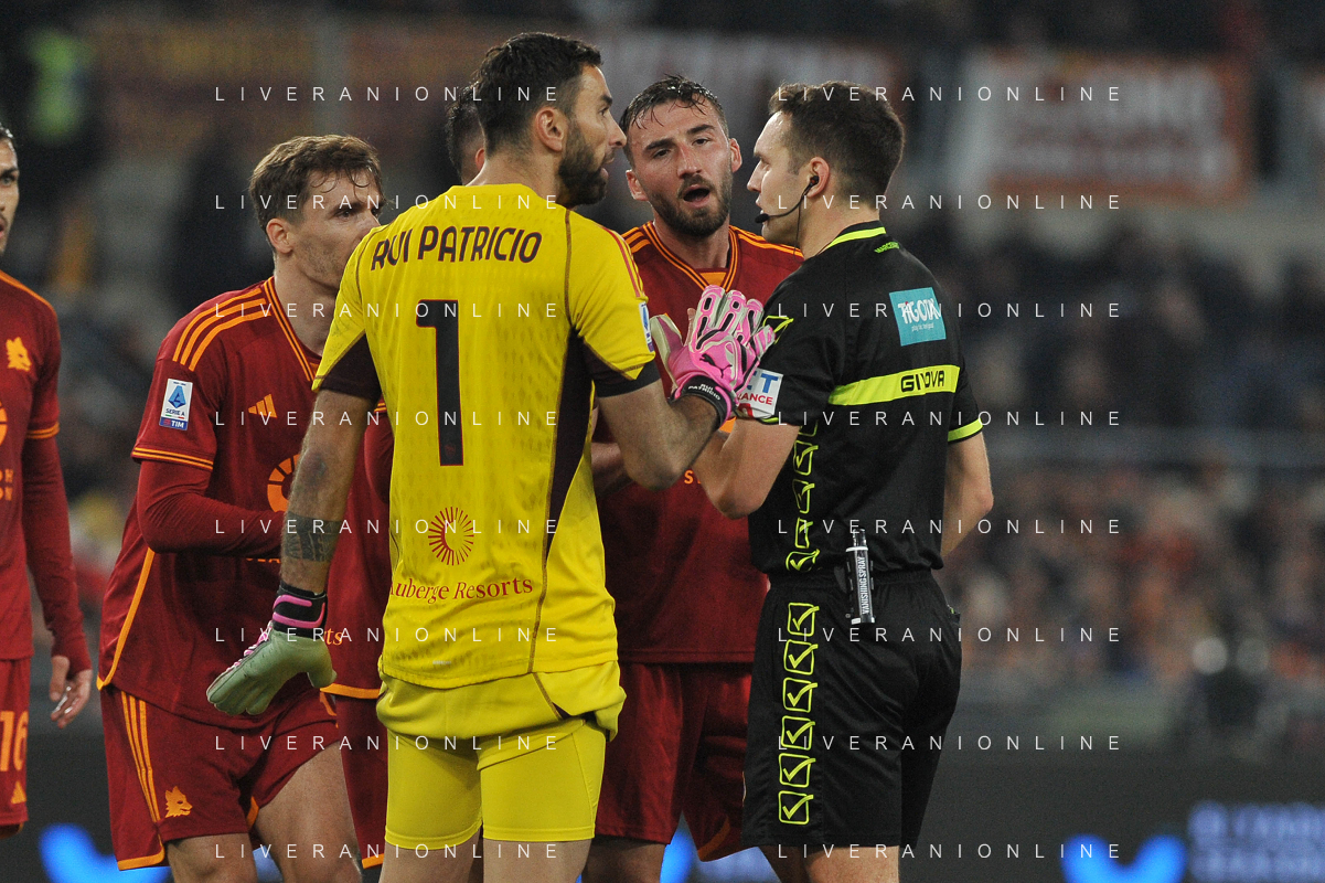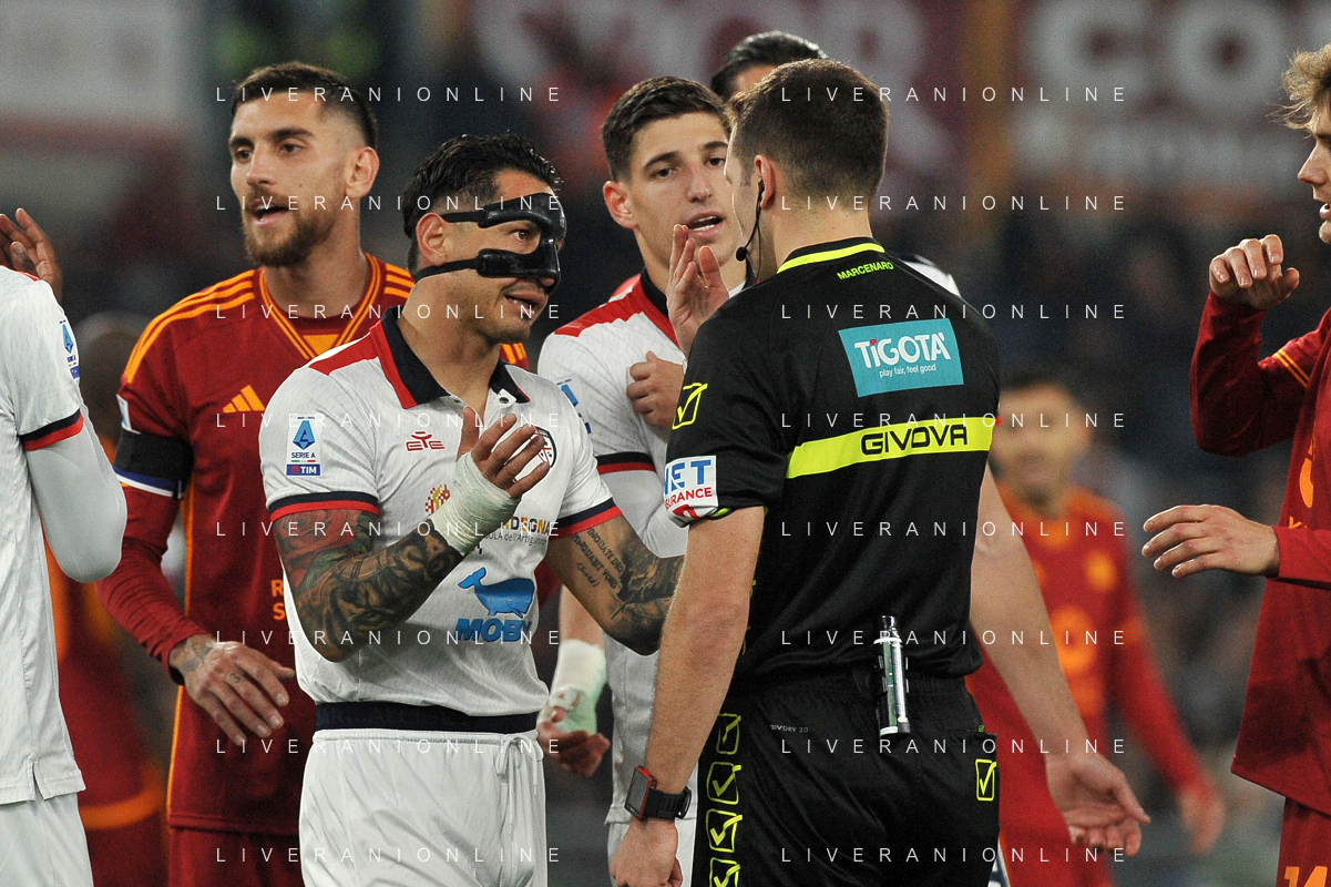 Roma vs Cagliari - Campionato Serie A TIM - 23 giornata - Stadio Olimpico - Roma 05-02-2024 nella foto Lapadula protesta con Marcenaro FOTO FEDERICO GAETANO-AG ALDO LIVERANI SAS