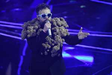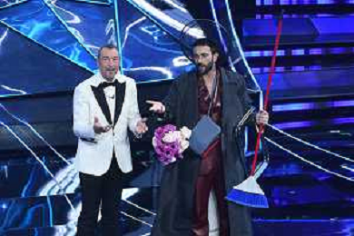 Festival Sanremo 2024 nella foto l'esibizione di Mahmood 74mo Festival della Canzone Italiana - Prima Serata Teatro Ariston - Sanremo (IM) 06-02-2024 foto Roberto Garavaglia/agenzia Aldo Liverani sas/AGENZIA ALDO LIVERANI SAS