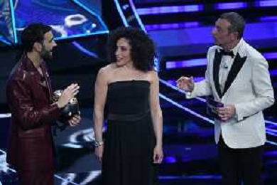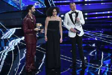 Festival Sanremo 2024 nella foto da SX Marco Mengoni, Federica Brignone e Amadeus 74mo Festival della Canzone Italiana - Prima Serata Teatro Ariston - Sanremo (IM) 06-02-2024 foto Roberto Garavaglia/agenzia Aldo Liverani sas/AGENZIA ALDO LIVERANI SAS