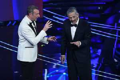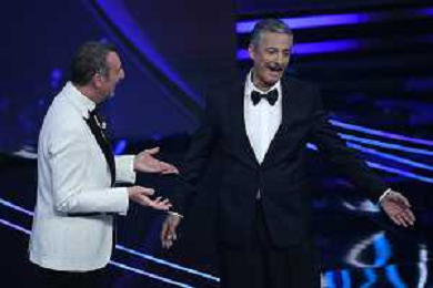 Festival Sanremo 2024 nella foto Amadeus e Fiorello 74mo Festival della Canzone Italiana - Prima Serata Teatro Ariston - Sanremo (IM) 06-02-2024 foto Roberto Garavaglia/agenzia Aldo Liverani sas/AGENZIA ALDO LIVERANI SAS