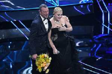 Festival Sanremo 2024 nella foto Amadeus e BigMama 74mo Festival della Canzone Italiana - Prima Serata Teatro Ariston - Sanremo (IM) 06-02-2024 foto Roberto Garavaglia/agenzia Aldo Liverani sas/AGENZIA ALDO LIVERANI SAS
