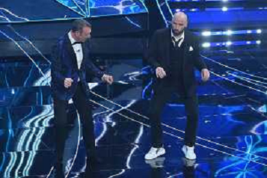 Festival Sanremo 2024 nella foto Amadeus e John Travolta 74mo Festival della Canzone Italiana - Seconda Serata Teatro Ariston - Sanremo (IM) 07-02-2024 foto Roberto Garavaglia/agenzia Aldo Liverani sas