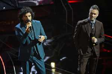 Festival Sanremo 2024 nella foto l'esibizione di Renga e Nek 74mo Festival della Canzone Italiana - Seconda Serata Teatro Ariston - Sanremo (IM) 07-02-2024 foto Roberto Garavaglia/agenzia Aldo Liverani sas/AGENZIA ALDO LIVERANI SAS