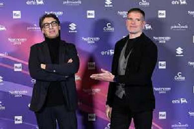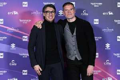 Festival Sanremo 2024 nella foto Paolo Jannacci SX e Stefano Massini DX 74mo Festival della Canzone Italiana, photocall del 08 febbraio Teatro Ariston - Sanremo (IM) 08-02-2024 foto Roberto Garavaglia/agenzia Aldo Liverani sas