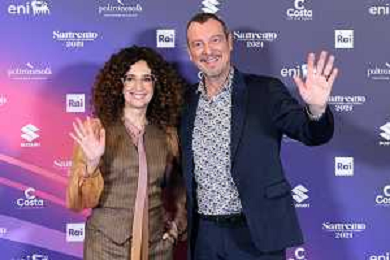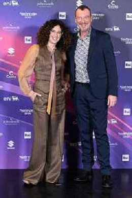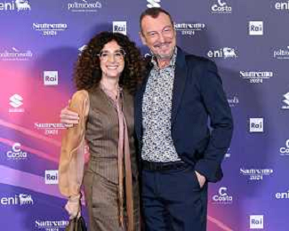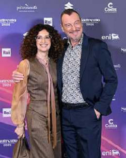 Festival Sanremo 2024 nella foto Teresa Mannino e Amadeus 74mo Festival della Canzone Italiana, photocall del 08 febbraio Teatro Ariston - Sanremo (IM) 08-02-2024 foto Roberto Garavaglia/agenzia Aldo Liverani sas