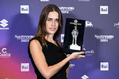 Festival Sanremo 2024 nella foto Clara con il premio di Nuovo Imaie 74mo Festival della Canzone Italiana, photocall del 08 febbraio Teatro Ariston - Sanremo (IM) 08-02-2024 foto Roberto Garavaglia/agenzia Aldo Liverani sas