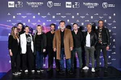 Festival Sanremo 2024 nella foto Russell Crowe con la sua band 74mo Festival della Canzone Italiana, photocall del 08 febbraio Teatro Ariston - Sanremo (IM) 08-02-2024 foto Roberto Garavaglia/agenzia Aldo Liverani sas/AGENZIA ALDO LIVERANI SAS