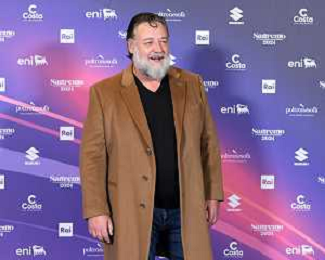 Festival Sanremo 2024 nella foto Russell Crowe 74mo Festival della Canzone Italiana, photocall del 08 febbraio Teatro Ariston - Sanremo (IM) 08-02-2024 foto Roberto Garavaglia/agenzia Aldo Liverani sas/AGENZIA ALDO LIVERANI SAS