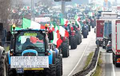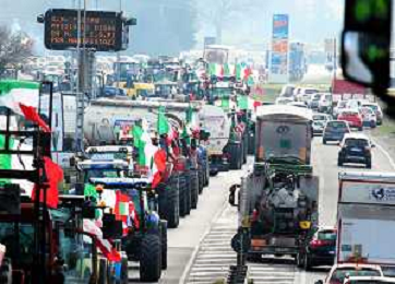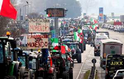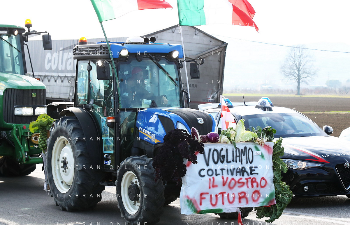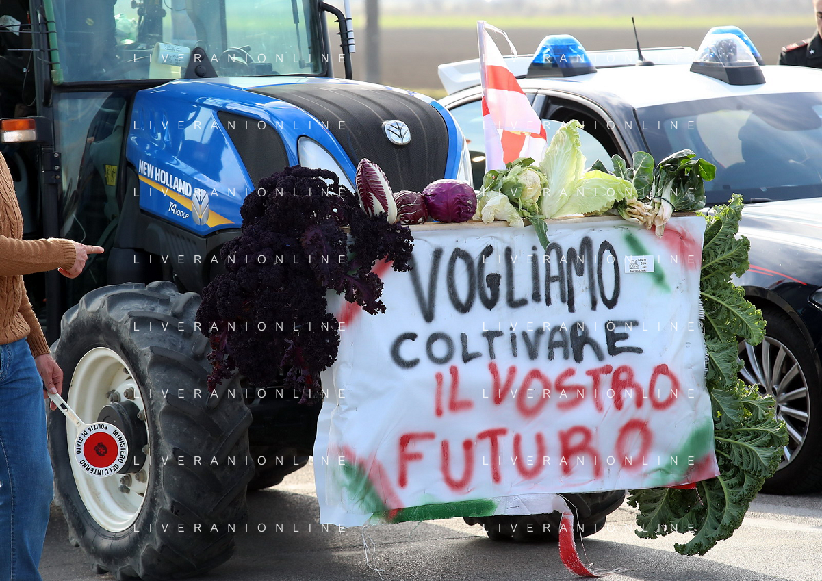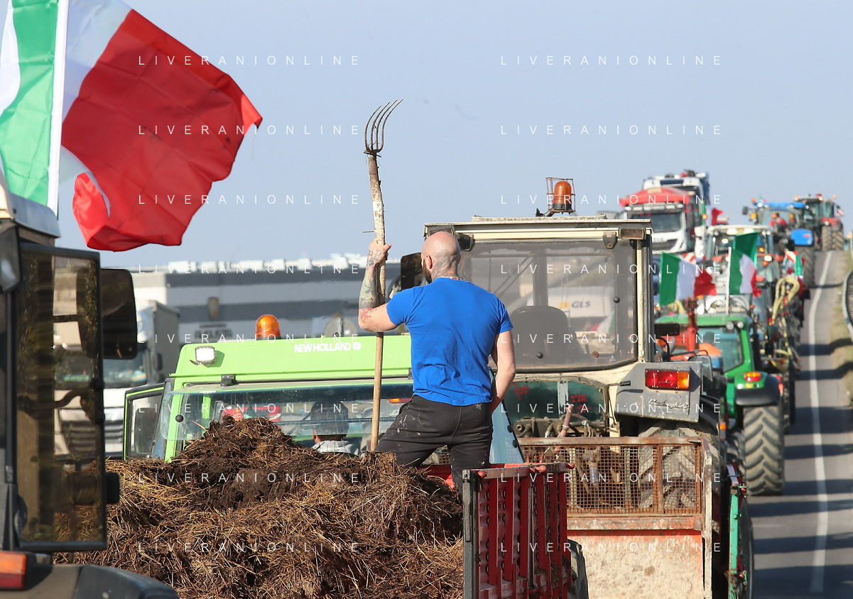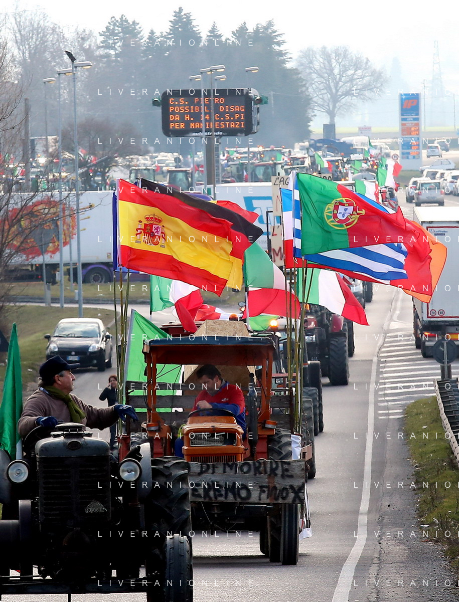CASTEL SAN PIETRO 08 02 2024 PROTESTA DEGLI AGRICOLTORI PRESSO IL CASELLO DELL'AUTOSTRADA DI CASTEL SAN PIETRO CONTRO LE NUOVE NORME D'EUROPA FOTO GIANNI SANNA-AG ALDO LIVERANI SAS