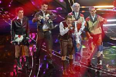 Festival Sanremo 2024 nella foto l'esibizione dei Bnkr44 Bunker Quarantaquattro 74mo Festival della Canzone Italiana - Terza Serata Teatro Ariston - Sanremo (IM) 08-02-2024 foto Roberto Garavaglia/agenzia Aldo Liverani sas/AGENZIA ALDO LIVERANI SAS