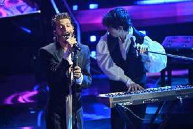 Festival Sanremo 2024 nella foto l'esibizione dei Santi Francesi 74mo Festival della Canzone Italiana - Terza Serata Teatro Ariston - Sanremo (IM) 08-02-2024 foto Roberto Garavaglia/agenzia Aldo Liverani sas/AGENZIA ALDO LIVERANI SAS
