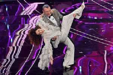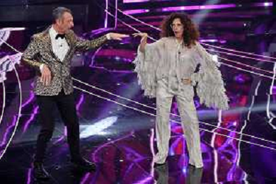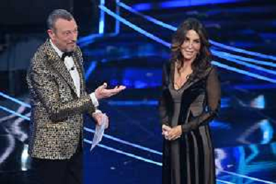 Festival Sanremo 2024 nella foto Amadeus e Teresa Mannino 74mo Festival della Canzone Italiana - Terza Serata Teatro Ariston - Sanremo (IM) 08-02-2024 foto Roberto Garavaglia/agenzia Aldo Liverani sas/AGENZIA ALDO LIVERANI SAS