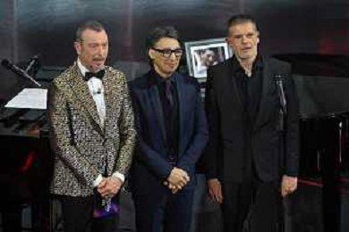 Festival Sanremo 2024 nella foto Amadeus, Paolo Jannacci e Stefano Massini momento dedicato ai morti sul lavoro 74mo Festival della Canzone Italiana - Terza Serata Teatro Ariston - Sanremo (IM) 08-02-2024 foto Roberto Garavaglia/agenzia Aldo Liverani sas/AGENZIA ALDO LIVERANI SAS