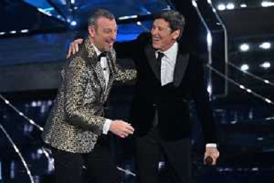 Festival Sanremo 2024 nella foto Amadeus ed Eros Ramazzotti 74mo Festival della Canzone Italiana - Terza Serata Teatro Ariston - Sanremo (IM) 08-02-2024 foto Roberto Garavaglia/agenzia Aldo Liverani sas/AGENZIA ALDO LIVERANI SAS