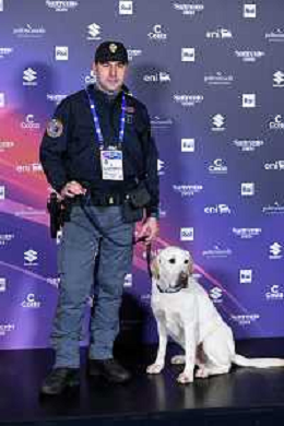 Festival Sanremo 2024 nella foto il cane anti esplosivo della Polizia di Stato incaricato di fare la bonifica del Teatro Ariston 74mo Festival della Canzone Italiana, photocall del 09 febbraio Teatro Ariston - Sanremo (IM) 09-02-2024 foto Roberto Garavaglia/agenzia Aldo Liverani sas