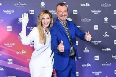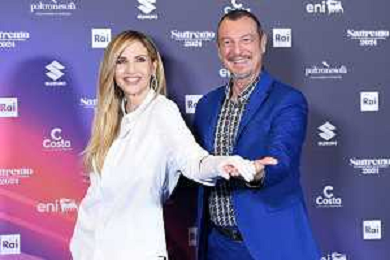 Festival Sanremo 2024 nella foto Lorella Cuccarini e Amadeus 74mo Festival della Canzone Italiana, photocall del 09 febbraio Teatro Ariston - Sanremo (IM) 09-02-2024 foto Roberto Garavaglia/agenzia Aldo Liverani sas