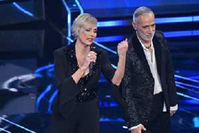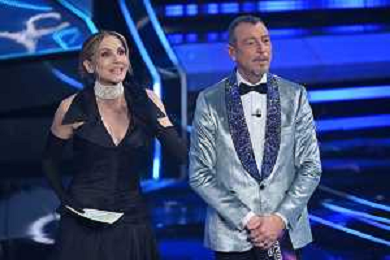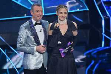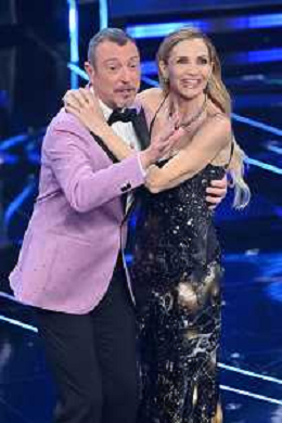 Festival Sanremo 2024 nella foto Lorella Cuccarini e Amadeus 74mo Festival della Canzone Italiana - Quarta Serata Teatro Ariston - Sanremo (IM) 09-02-2024 foto Roberto Garavaglia/agenzia Aldo Liverani sas/AGENZIA ALDO LIVERANI SAS