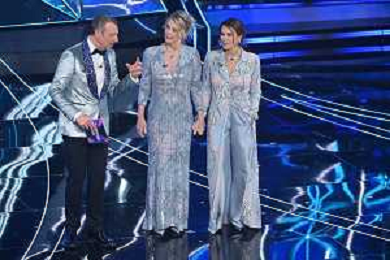 Festival Sanremo 2024 nella foto Amadeus, Margherita Buy ed Elena Sofia Ricci 74mo Festival della Canzone Italiana - Quarta Serata Teatro Ariston - Sanremo (IM) 09-02-2024 foto Roberto Garavaglia/agenzia Aldo Liverani sas/AGENZIA ALDO LIVERANI SAS