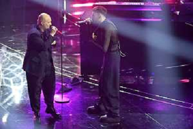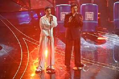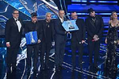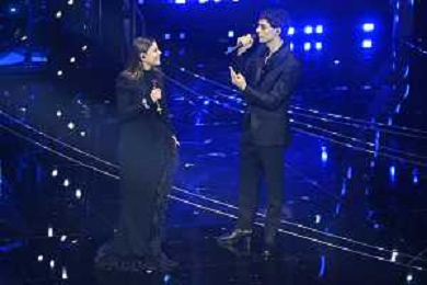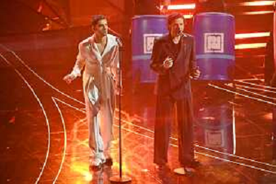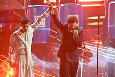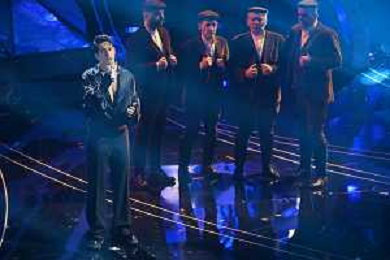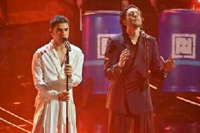 Festival Sanremo 2024 nella foto Mahmood con i Tenores di Bitti 74mo Festival della Canzone Italiana - Quarta Serata Teatro Ariston - Sanremo (IM) 09-02-2024 foto Roberto Garavaglia/agenzia Aldo Liverani sas/AGENZIA ALDO LIVERANI SAS
