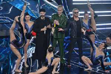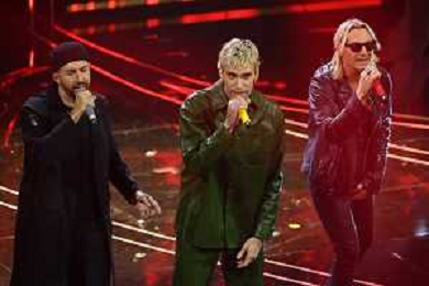 Festival Sanremo 2024 nella foto Il Tre con Fabrizio Moro 74mo Festival della Canzone Italiana - Quarta Serata Teatro Ariston - Sanremo (IM) 09-02-2024 foto Roberto Garavaglia/agenzia Aldo Liverani sas