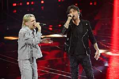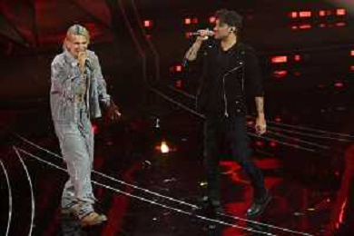 Festival Sanremo 2024 nella foto Maninni con Ermal Meta 74mo Festival della Canzone Italiana - Quarta Serata Teatro Ariston - Sanremo (IM) 09-02-2024 foto Roberto Garavaglia/agenzia Aldo Liverani sas