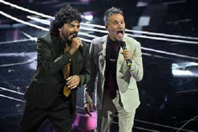 Festival Sanremo 2024 nella foto Renga e Nek 74mo Festival della Canzone Italiana - Quarta Serata Teatro Ariston - Sanremo (IM) 09-02-2024 foto Roberto Garavaglia/agenzia Aldo Liverani sas