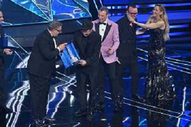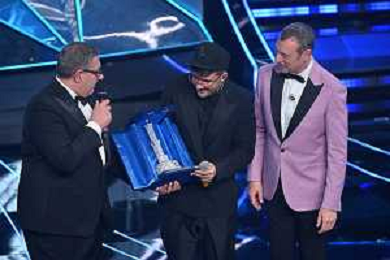 Festival Sanremo 2024 nella foto Geolier vince la serata delle cover 74mo Festival della Canzone Italiana - Quarta Serata Teatro Ariston - Sanremo (IM) 09-02-2024 foto Roberto Garavaglia/agenzia Aldo Liverani sas/AGENZIA ALDO LIVERANI SAS