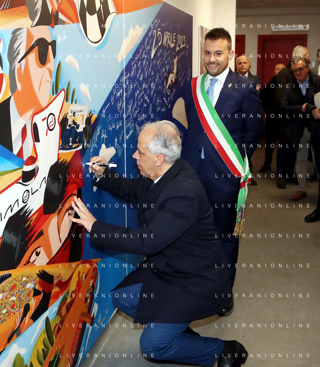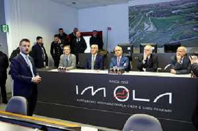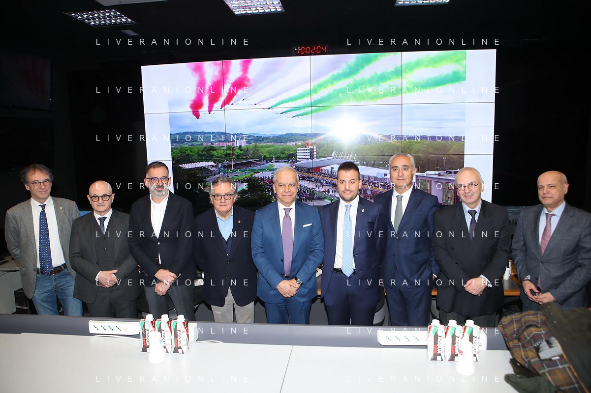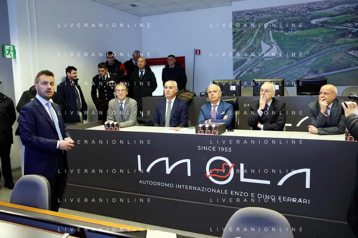 IMOLA 10 02 2024 AUTODROMO ENZO E DINO FERRARI VISITA DEL MINISTRO DELL'INTERNO MATTEO PIANTEDOSI NELLA FOTO MAGNIFICO RETTORE UNIVERSITA' DI BOLOGNA GIOVANNI MOLARI,CAPUZZIMATI GIACOMO DIRETTORE CON.AMI,PIETRO BENVENUTI DIRETTORE AUTODROMO IMOLA,GIANCARLO MINARDI PRESIDENTE FORMULA IMOLA,MINISTRO DELL'INTERNO MATTEO PIANTEDOSI,SINDACO MARCO PANIERI,FABIO BACCHILEGA PRESIDENTE CON.AMI E ULTIMO,ANTONIO SBORDONE QUESTORE DI BOLOGNA ©SANNA/AGENZIA ALDO LIVERANI SAS